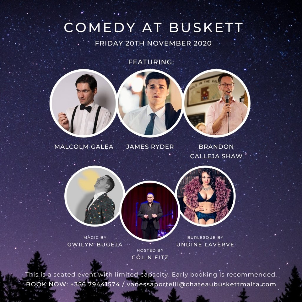 - “Comedy at Buskett” – Friday 20th November 2020